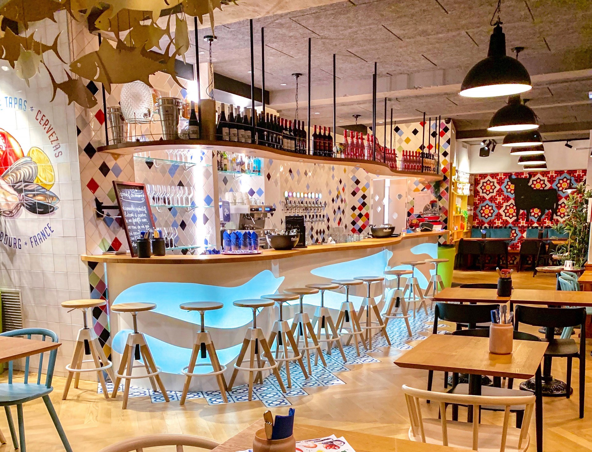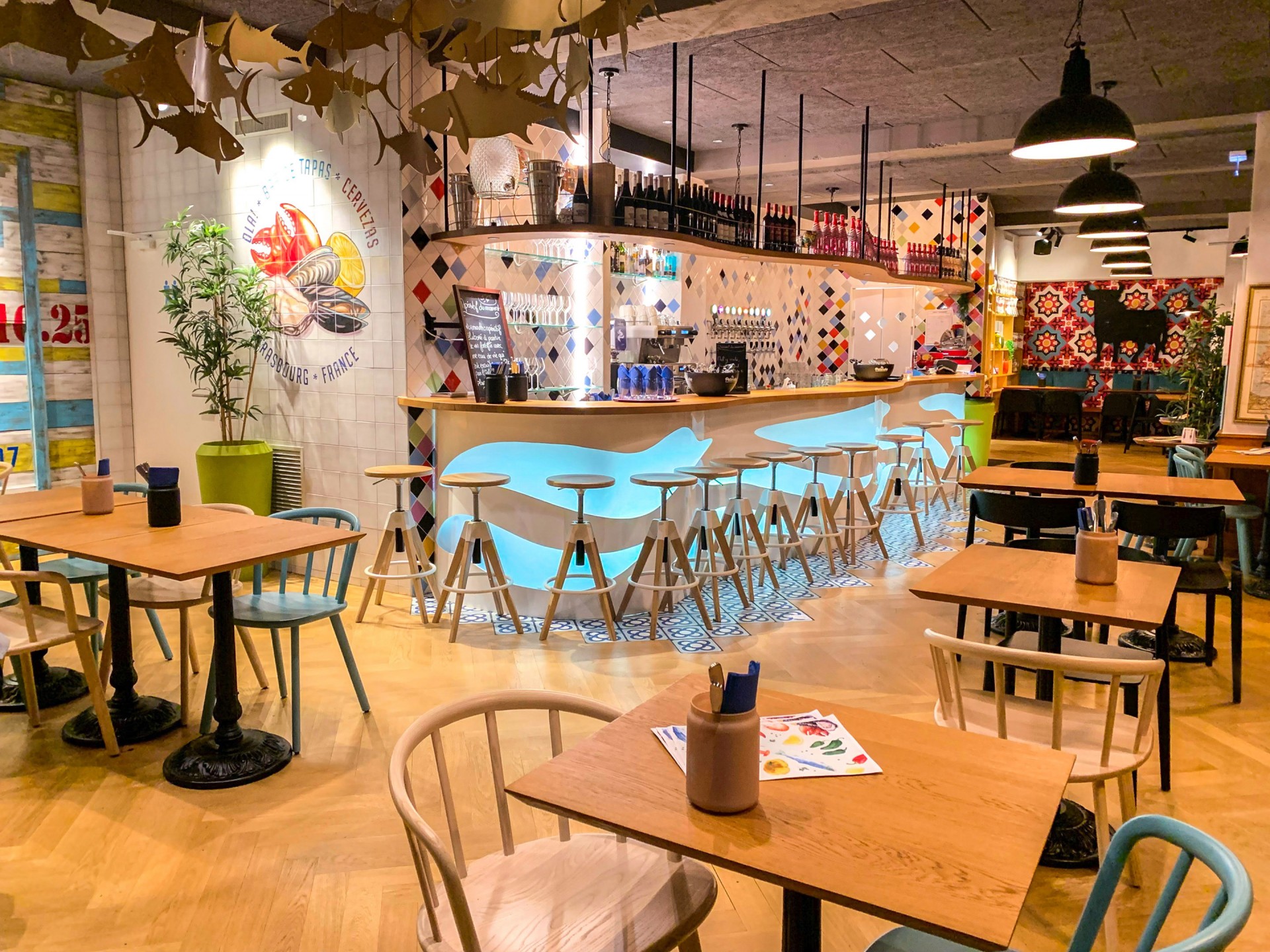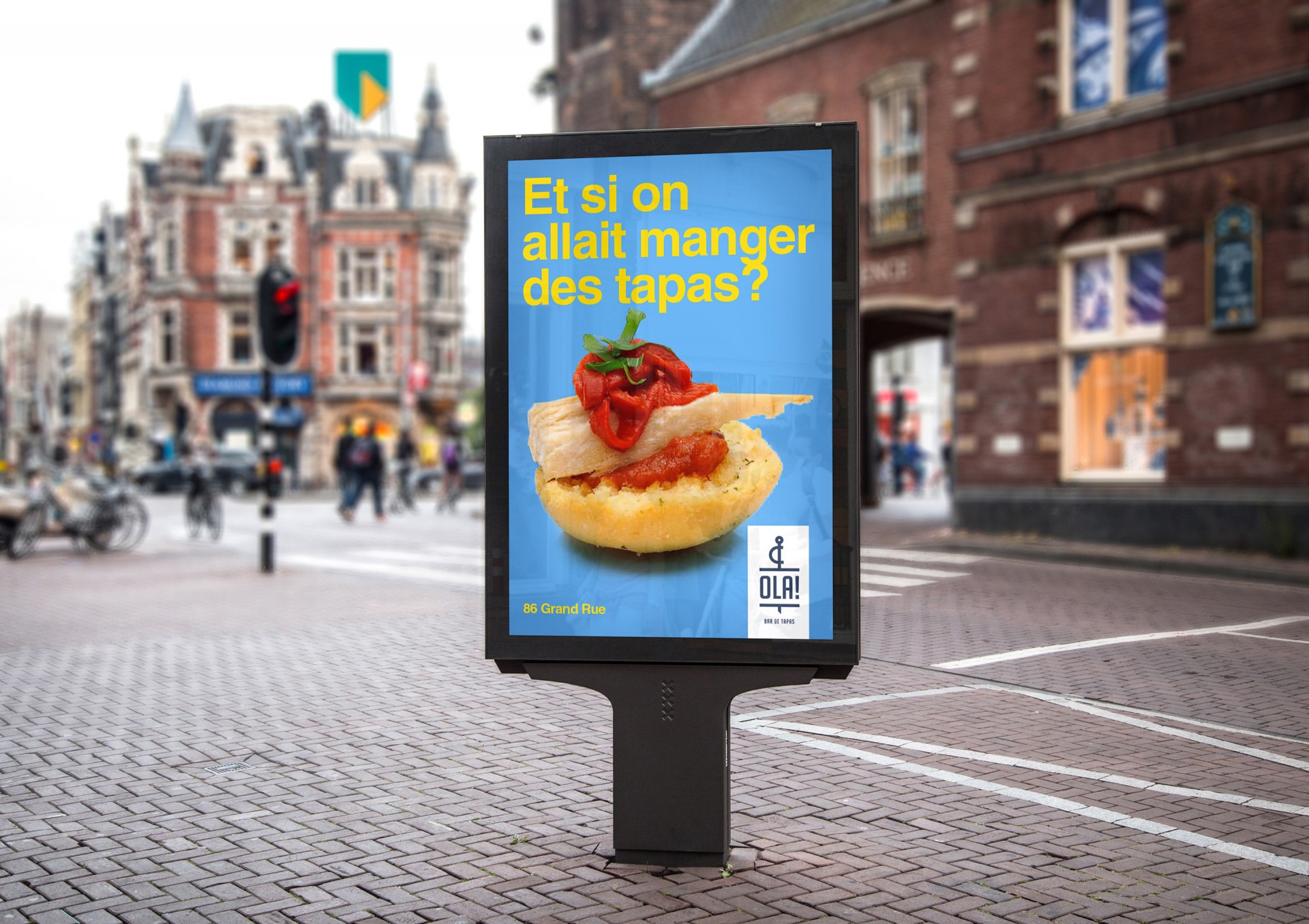 Ola! Tapas es un restaurante de comida española en la ciudad de Estrasburgo, Francia. En equipo con el arquitecto Pedro Scattarella, desarrollamos el proyecto de identidad e interiorismo del restaurante.